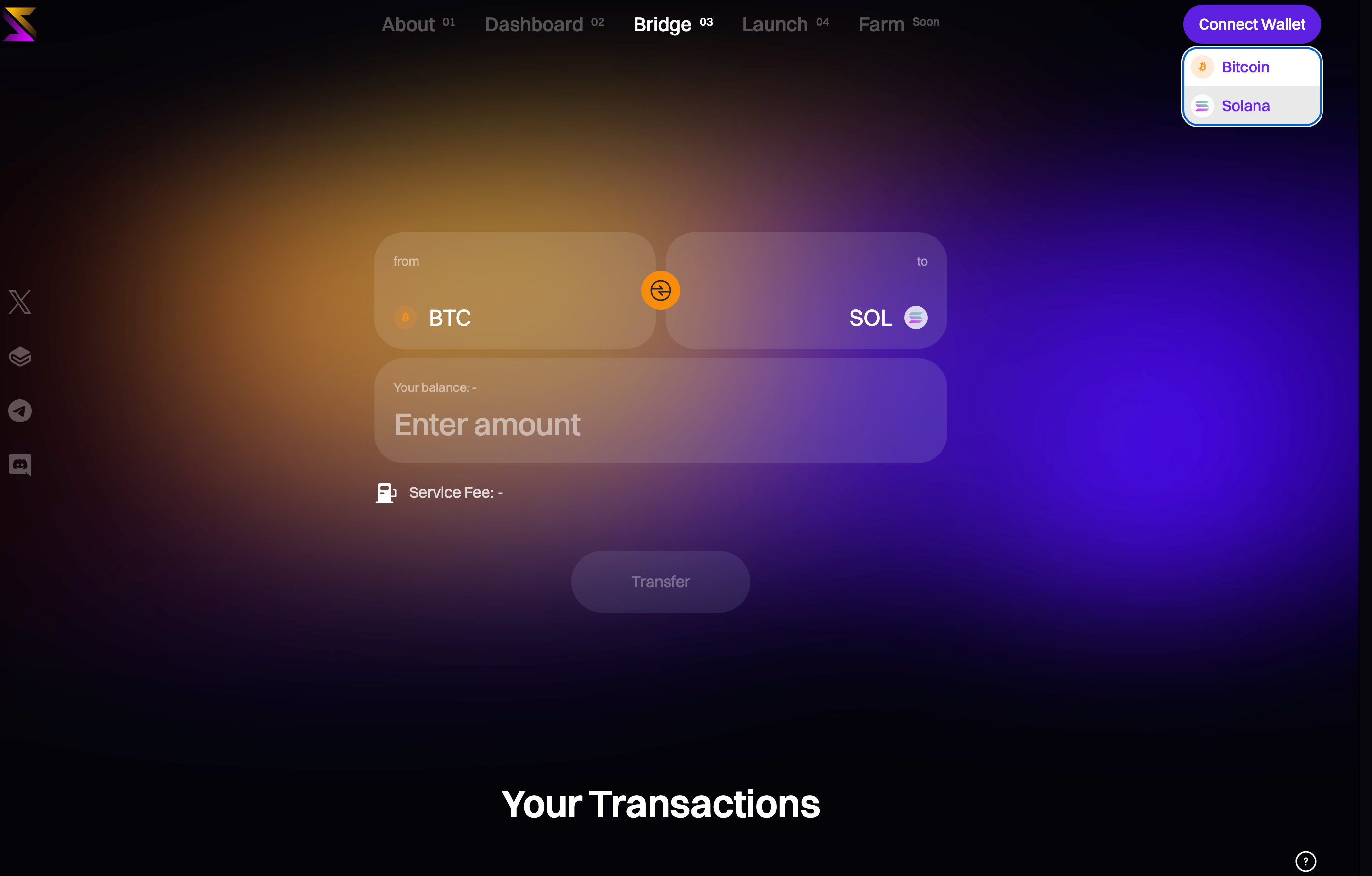 **Step 4:** Insert the amount that you want to bridge, then insert your BTC wallet address that you wish to receive.